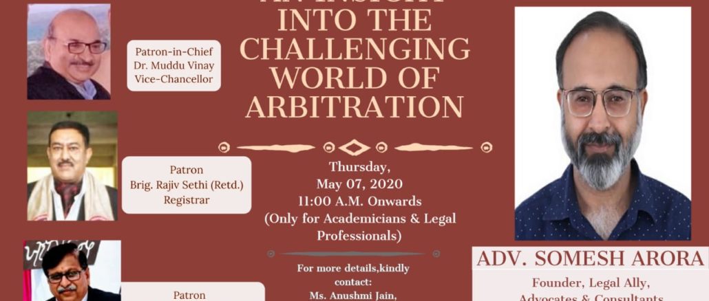 A Webinar on AN INSIGHT INTO THE CHALLENGING WORLD OF ARBITRATION- 07 May,2020